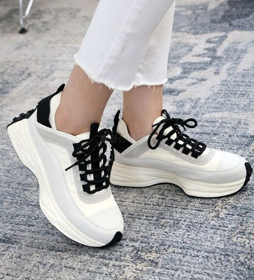 03-10【C413】韓國 厚底運動鞋-休閒素面多色拼接尼龍皮革防滑顆粒鞋子(4.5cm)★★